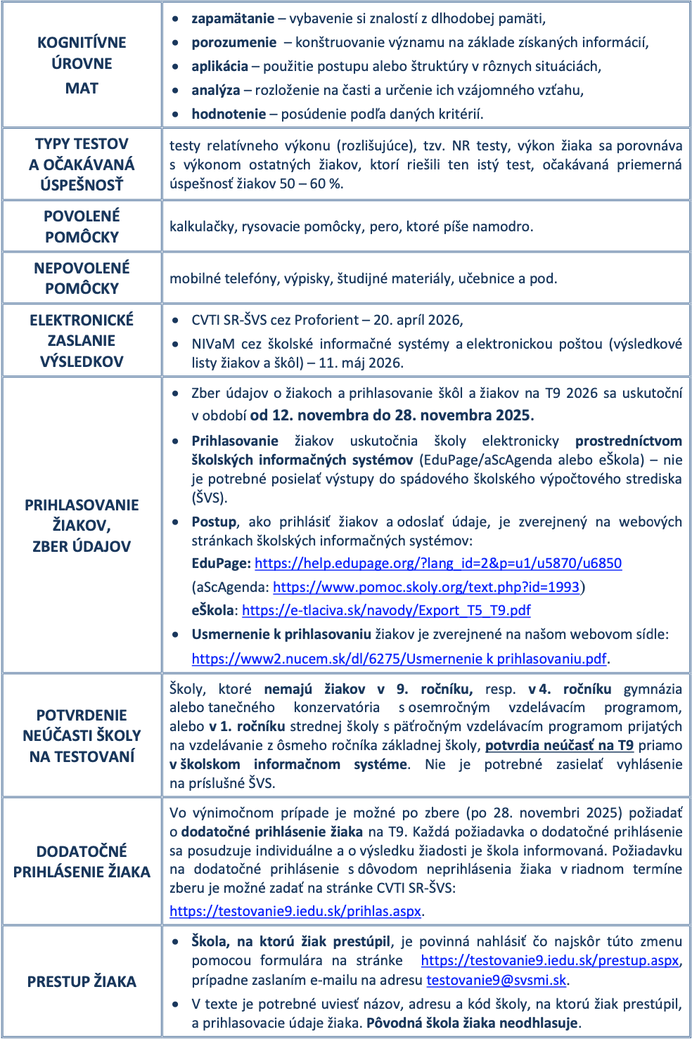 ℹ️ Informácie pre žiakov strednej školy
